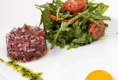 «Тар-тар из говядины» - это еда для настоящих горячих мужчин, состоит она из свежей говядины, нарубленной красивыми кубиками вперемешку с красным луком, приятно дополняет блюдо бальзамик, пармезан и салат руккола. Доставка такой закуски на дом - гарантия того, что пикантная еда станет открытием нового вкуса.